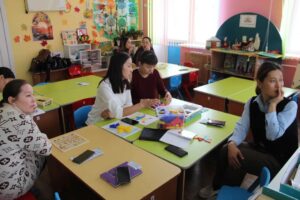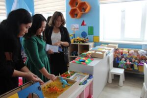 топ бөлмесінде заттық дамытушы ортаны ұйымдастыру тиімділігі бойынша практикалық тұрғыда жұмыстар көрсетілді. Психолог Бекбаева Д.Д қатысушылармен рефлексия жүргізді. Барлық келген педагогтар ой бөлісіп, пікір алмасты, жақсы лебіздерін білдірді.
